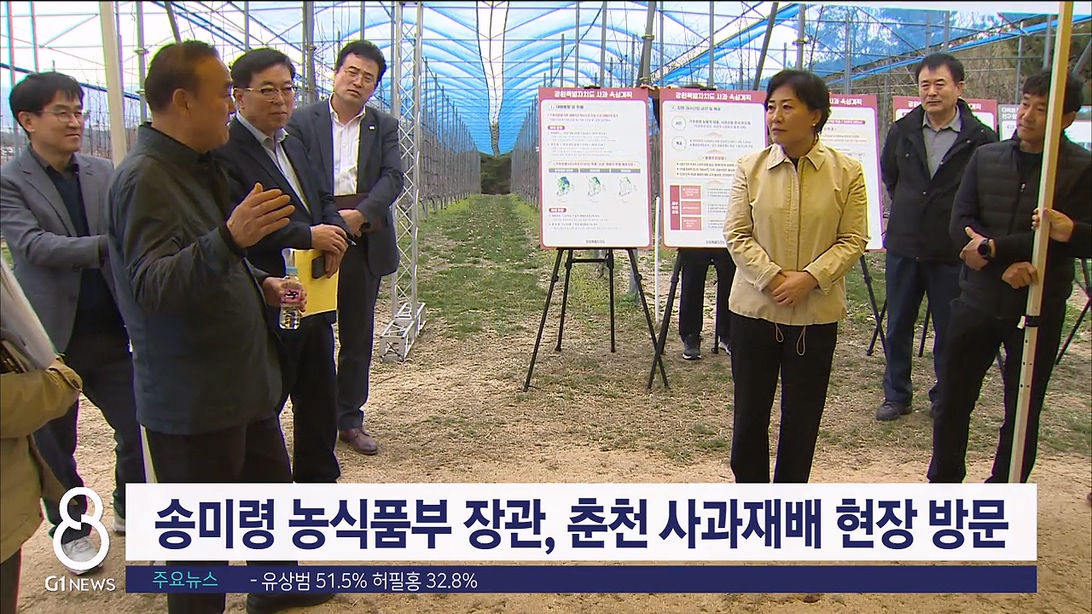 송미령 농림축산식품부 장관은 오늘(3일) 춘천 과수원을 방문하고 '강원 사과 육성' 현황 등을 점검했습니다.