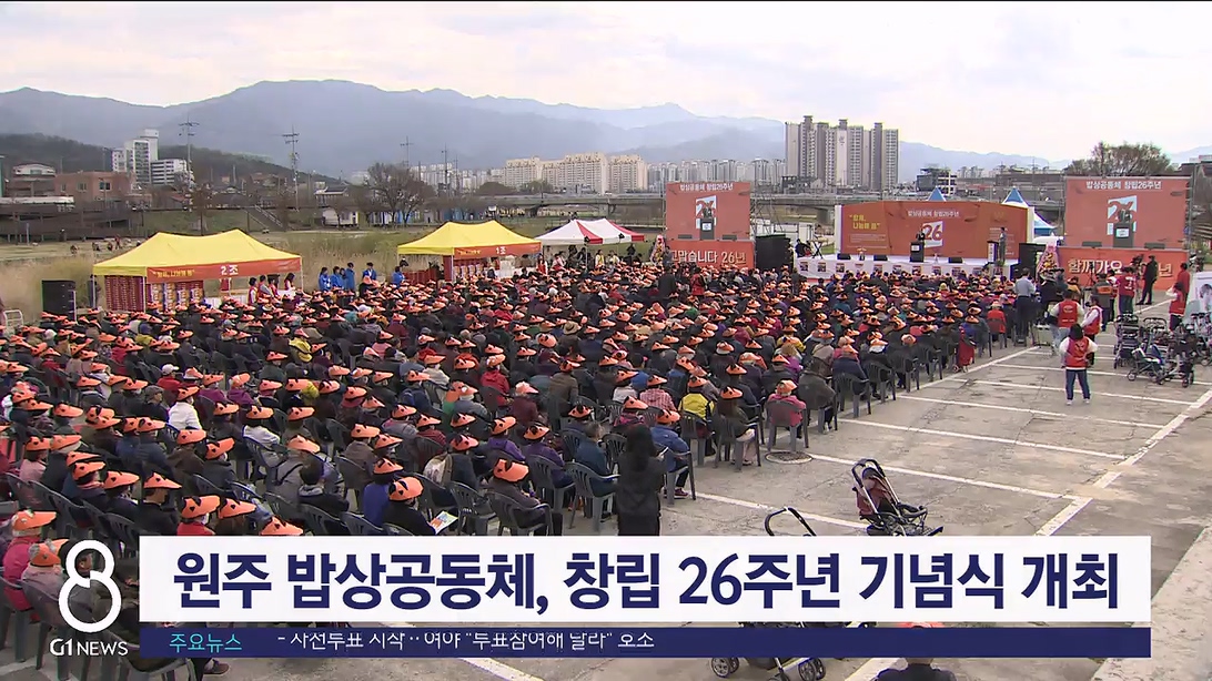 원주밥상공동체 복지재단은 오늘(5일) 원주교 아래에서 창립 26주년 나눔 행사를 열었습니다.
