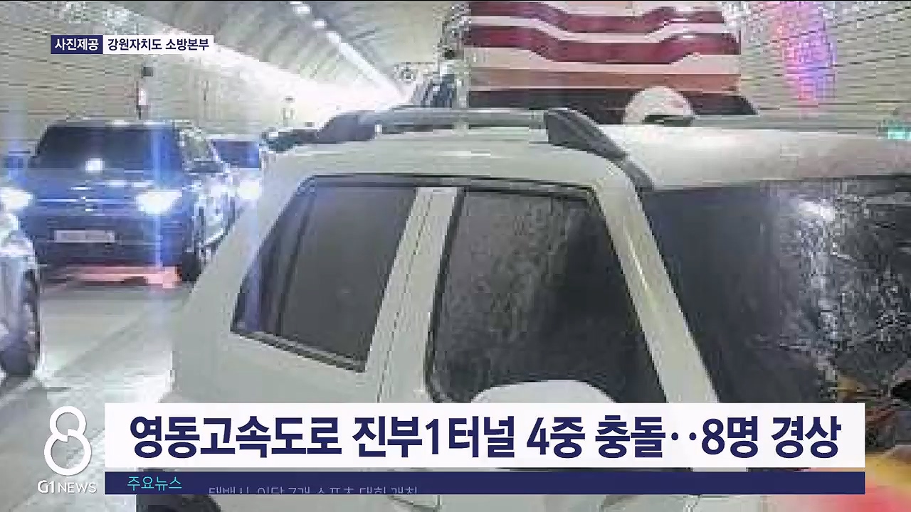 영동고속도로 진부1터널 4중 추돌..8명 경상