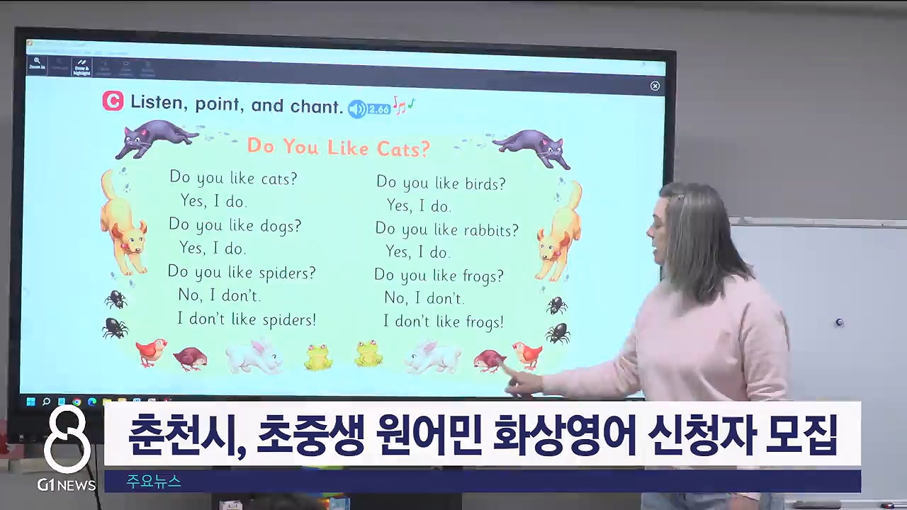 춘천시가 원어민 화상영어 교육지원 사업에 참여할 초등학생과 중학생 신청자를 오는 15일부터 23일까지 모집합니다.