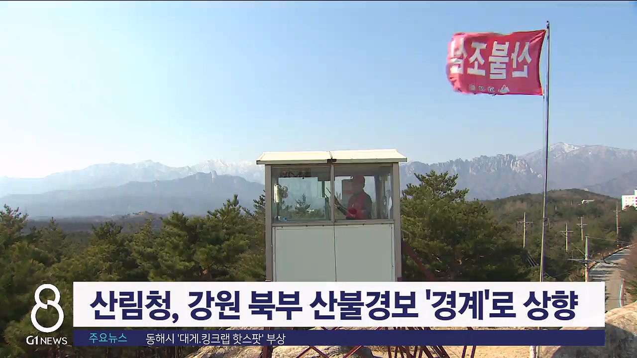 강원 북부 지역의 산불재난 국가위기경보가 '주의'에서 '경계'로 상향됐습니다.