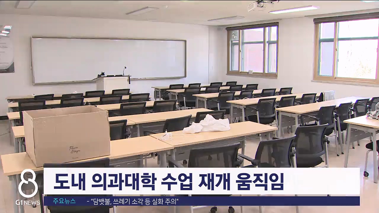 정부의 의과대학 증원 계획에 반발하며 개강을 미뤄왔던 도내 의과대학들이 학생들의 유급 사태를 막기 위해 수업 재개 움직임을 보이고 있습니다.