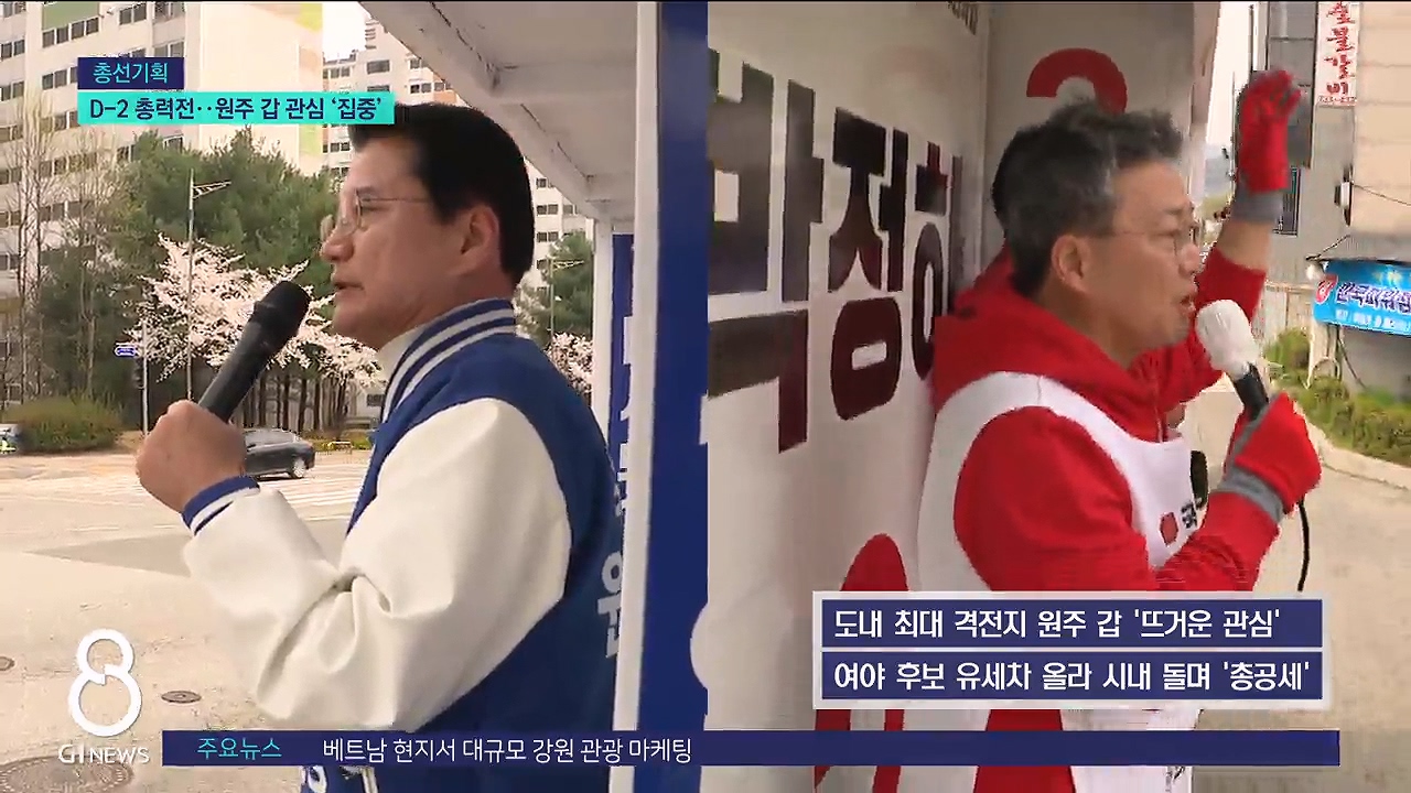 특히 원주갑 선거구는 리턴매치인데다 극적인 차이로 당락이 결정될 수 있다는 전망까지 나오면서, 최대 관심 지역으로 떠올랐습니다.