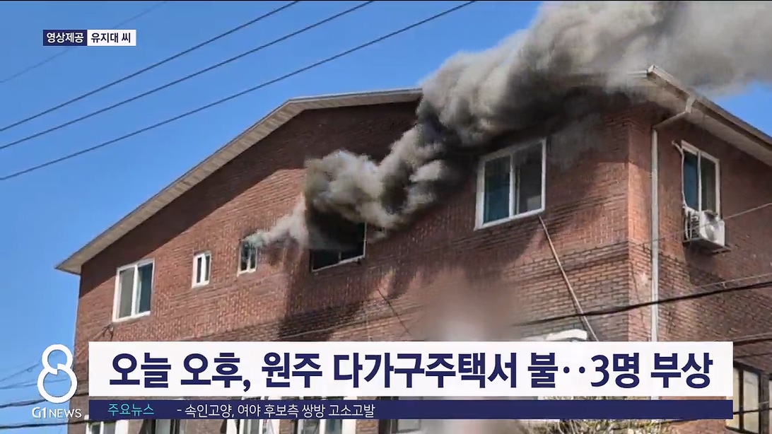 오늘 오후 원주 다가구주택서 불..3명 부상