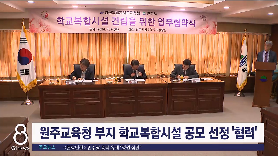 원주시와 도교육청, 원주교육지원청은 오늘(9일) 원주시청에서 업무협약을 맺고,