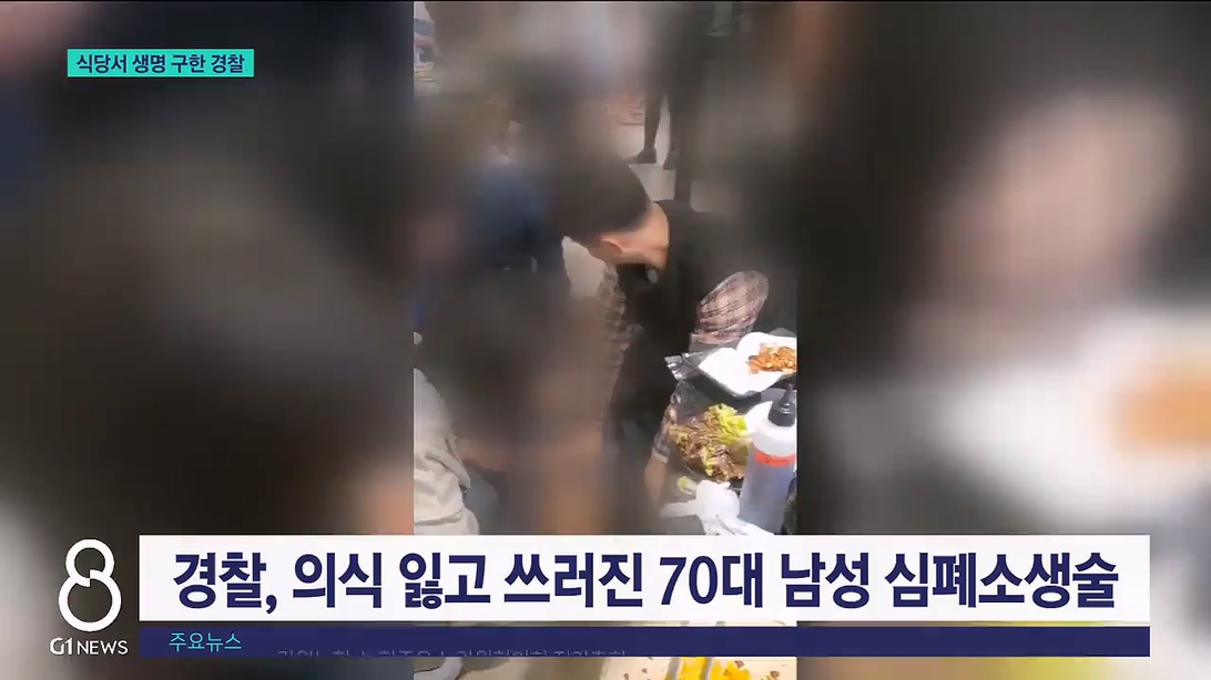 "화장실 가시다가 쓰러지신 거 같았어요 상황이. 근데 다행히 바로 옆자리에 경찰분이 계셨는데 그분께서 당황하지 않고 오셔서 심폐소생술을 해주셔서."