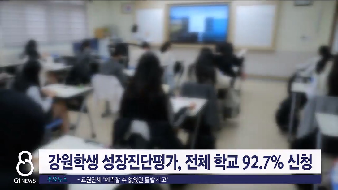 강원자치도교육청은 올해 실시하는 '강원학생성장진단평가'의 학교별 신청을 받은 결과 전체 학교의 92.7%가 신청했다고 밝혔습니다.