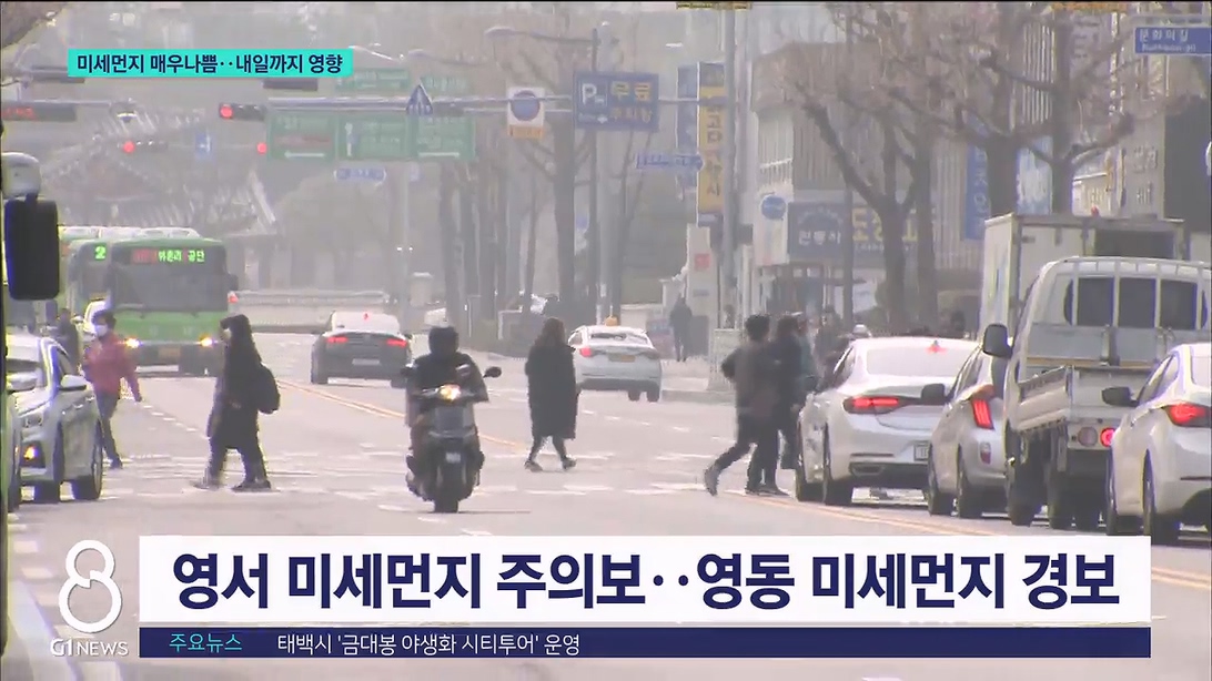강원 미세먼지 '매우나쁨'..내일까지 영향