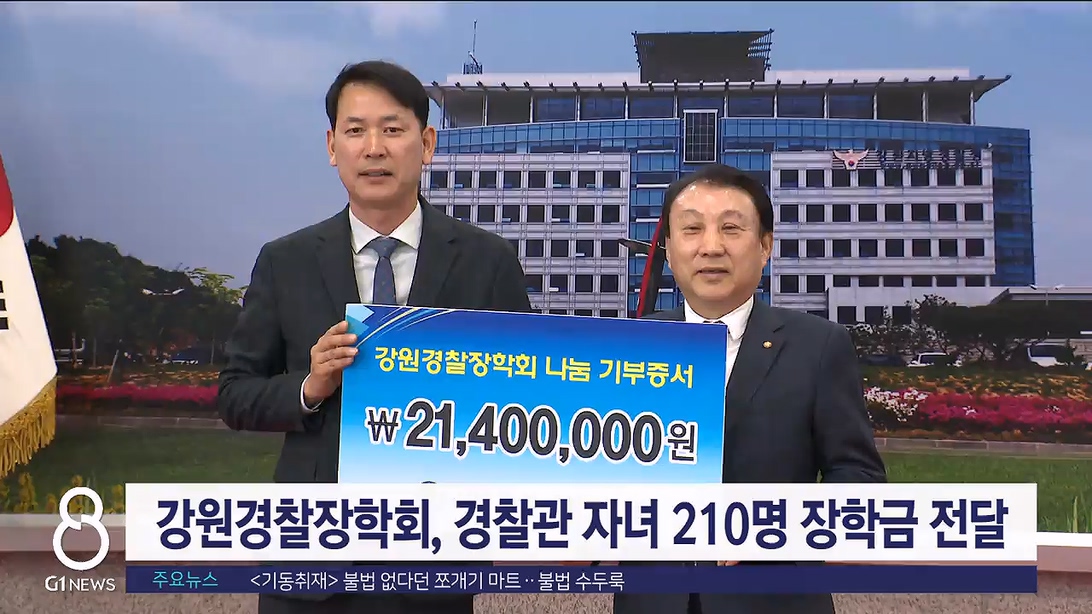 오늘 강원경찰청에서 열린 수여식에서는 공무로 인해 목숨을 잃거나 크게 다친 경찰관 자녀 210명에게 장학금 1억 3천만 원이 전달됐습니다.