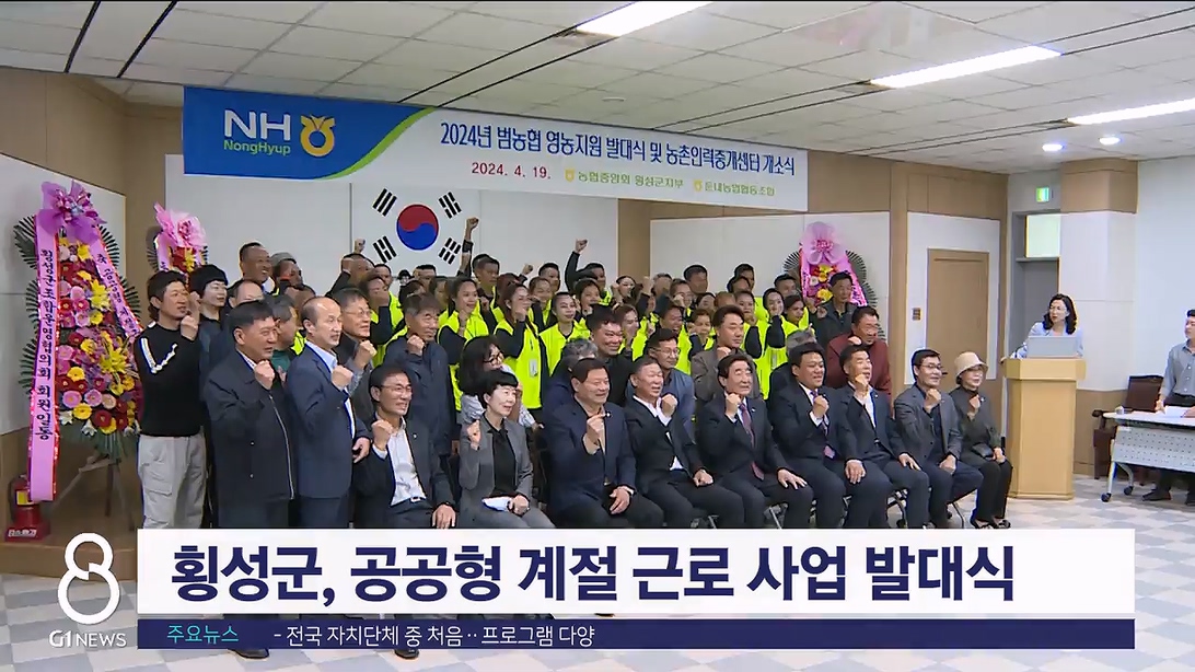 횡성군이 오늘(19일) 둔내농협에서 계절 근로 사업의 시작을 알리는 영농 지원 발대식과 인력 중개센터 개소식을 열었습니다.