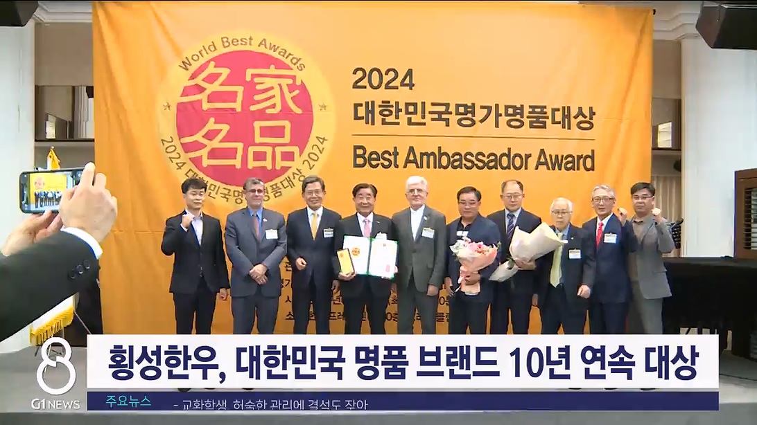 횡성의 대표 먹거리 브랜드인 '횡성한우'가 한국소비자협회가 주관한 '2024 대한민국 명가 명품 대상' 지역 명품 브랜드 부문에서 10년 연속 대상을 수상했습니다.