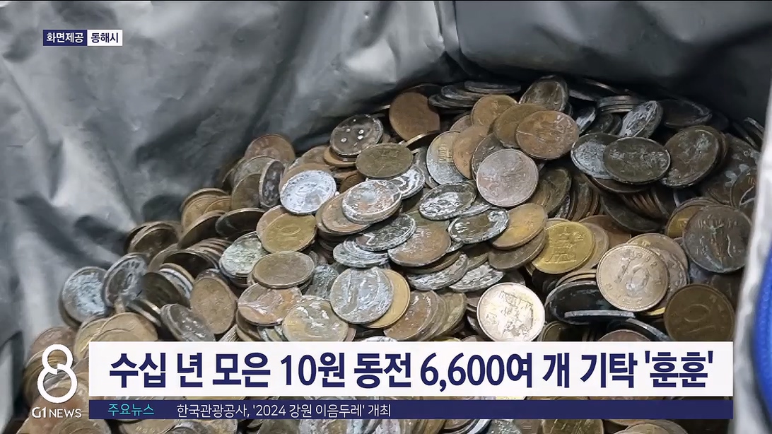 동해에 거주하는 익명의 기부자가 수십년 동안 모은 동전을 기탁해 눈길을 끕니다.