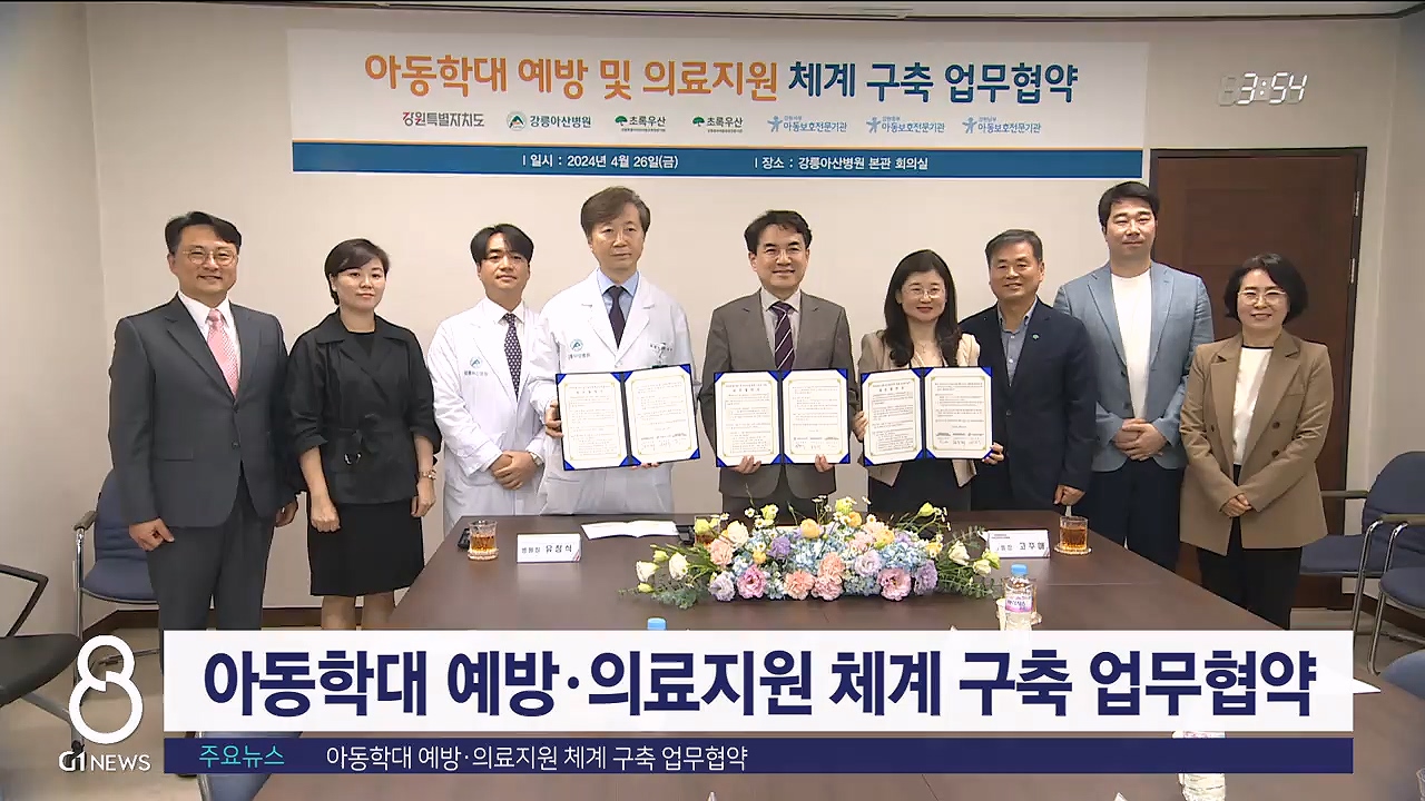 이번 협약은 지난해 10월 강릉 아산병원이 도 지정 아동학대 전담 '광역새싹지킴이병원'으로 선정됨에 따라, 관계 기관간 유기적 협력 체계를 구축하기 위해 체결됐습니다.