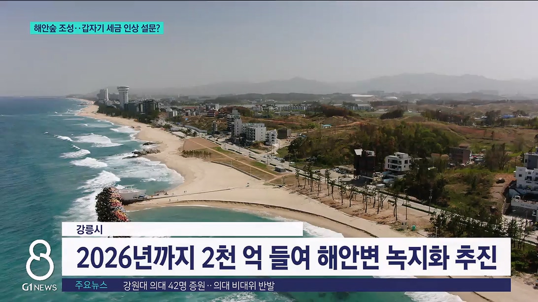 강릉시가 해변가 일대에 공원을 조성하는 녹지화 사업을 추진하고 있습니다.