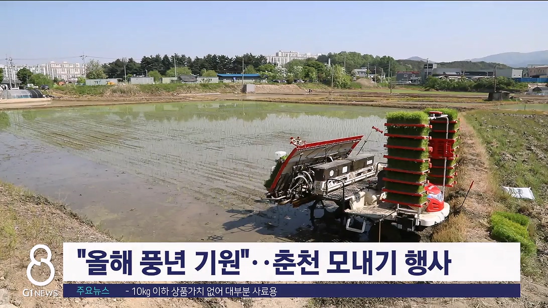 풍년 모내기 행사에서는 육동한 춘천시장과 김진호 춘천시의장 등이 참여해 시 대표 품종인 삼광벼를 이앙했습니다.