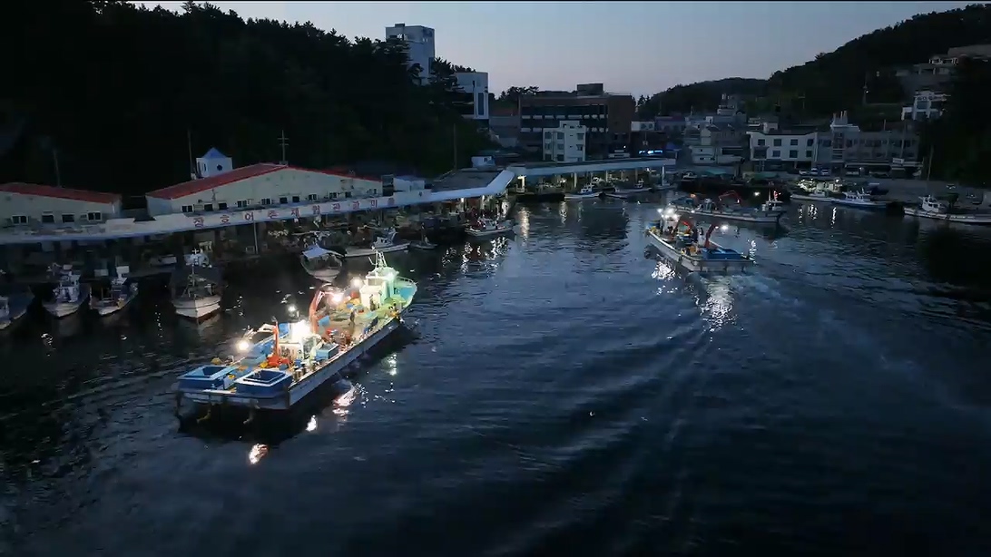 이른새벽 조업을 마치고 돌아오는 어선들.
