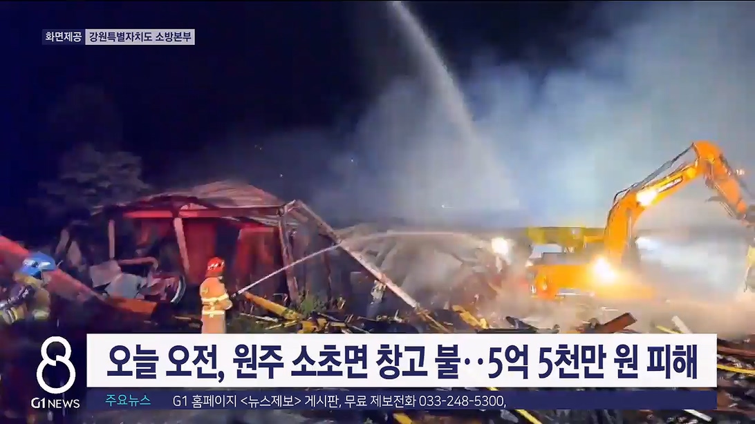 오늘 오전, 원주 소초면 창고 불..5억 5천만 원 피해