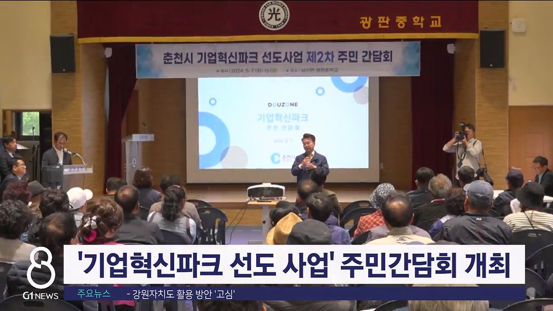 춘천시가 오늘(7일) 기업혁신파크 사업 부지 인근인 광판중학교에서 주민간담회를 열고, 향후 개발계획 등을 설명했습니다.