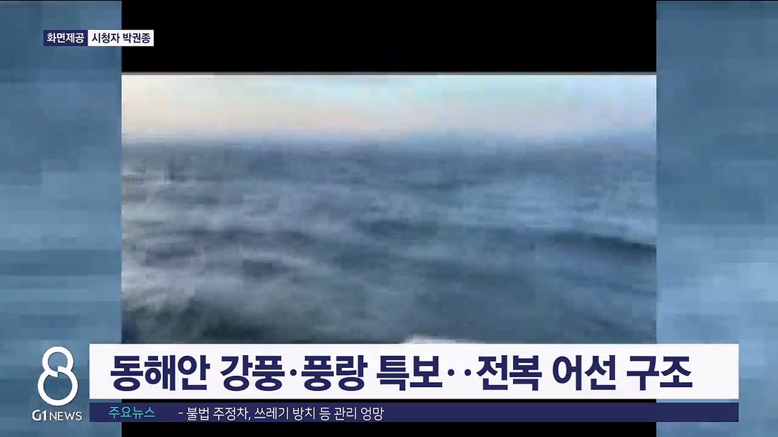 동해안 강풍·풍랑 특보..전복 어선 구조