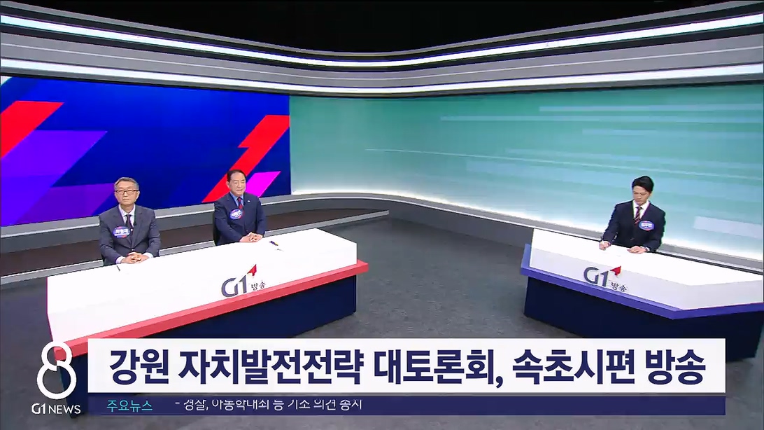 강원자치도와 도내 18개 시군의 발전 전략을 모색해 보는 G1 생방송 '강원자치발전 전략 대토론회' 속초시편이 오늘(13일) 열렸습니다.