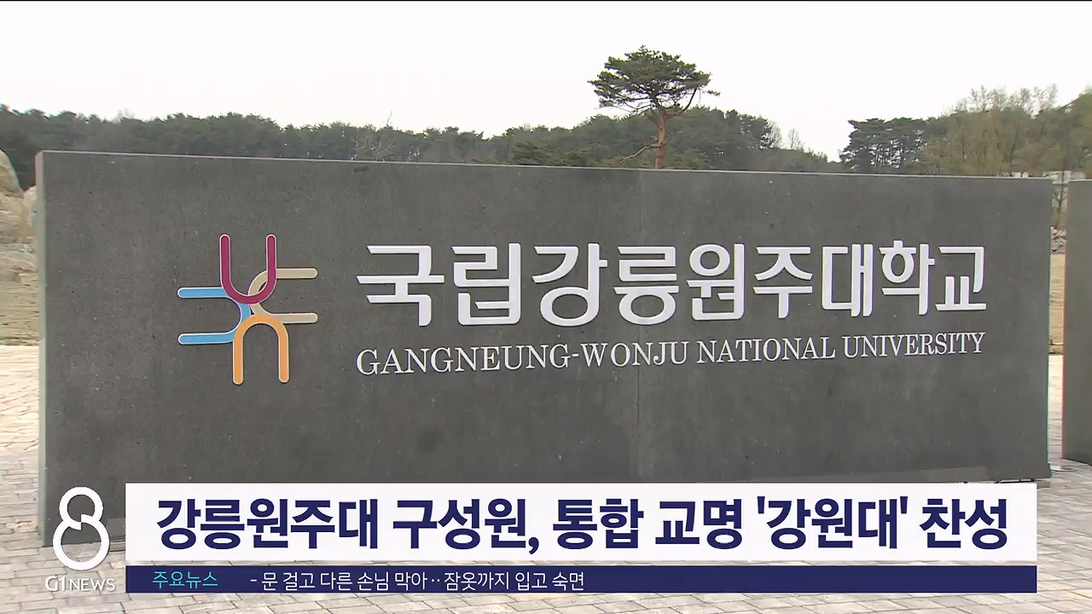 강릉원주대가 대학 구성원 설문 결과, 10명 중 9명이 강원대와의 통합 개교명을 '강원대학교'로 하는데 찬성하는 것으로 나타났습니다.