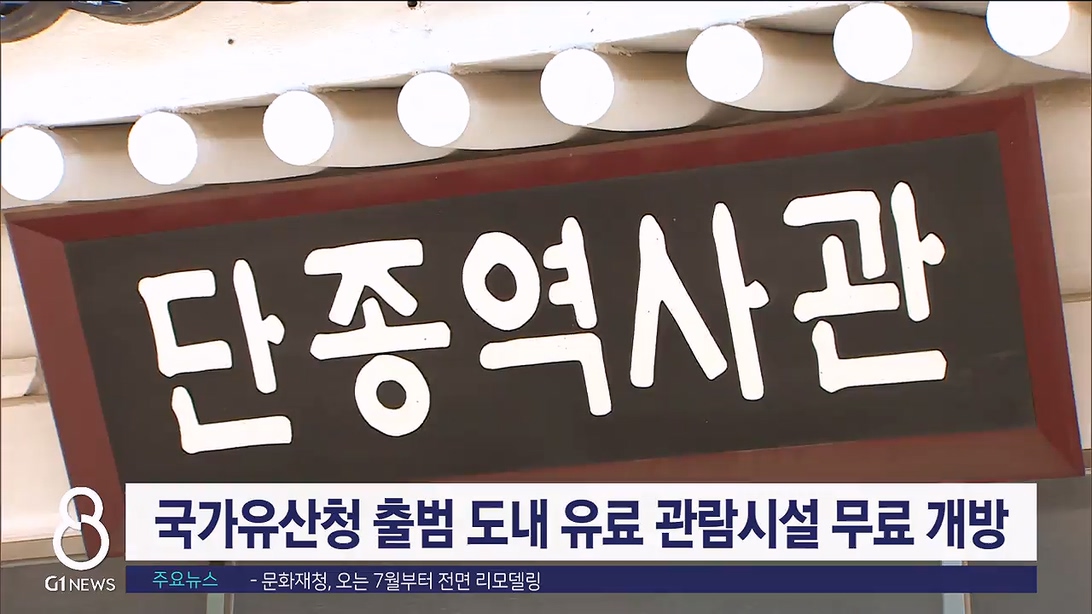 국가유산청 출범 도내 유료 관람시설 무료 개방