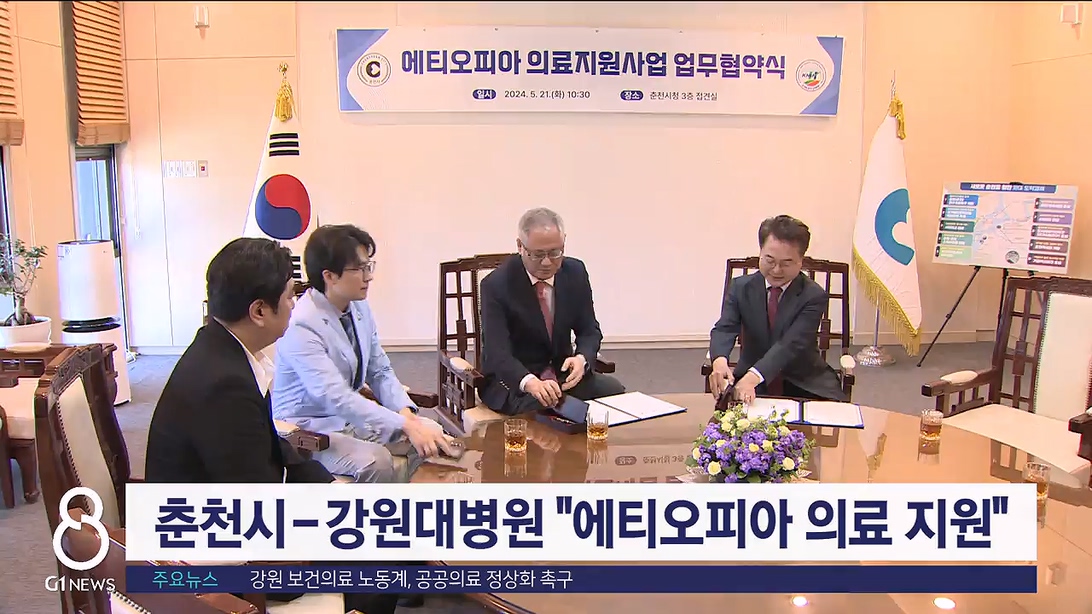 춘천시와 강원대병원이 에티오피아 의료지원 사업을 위한 업무협약을 맺었습니다.
