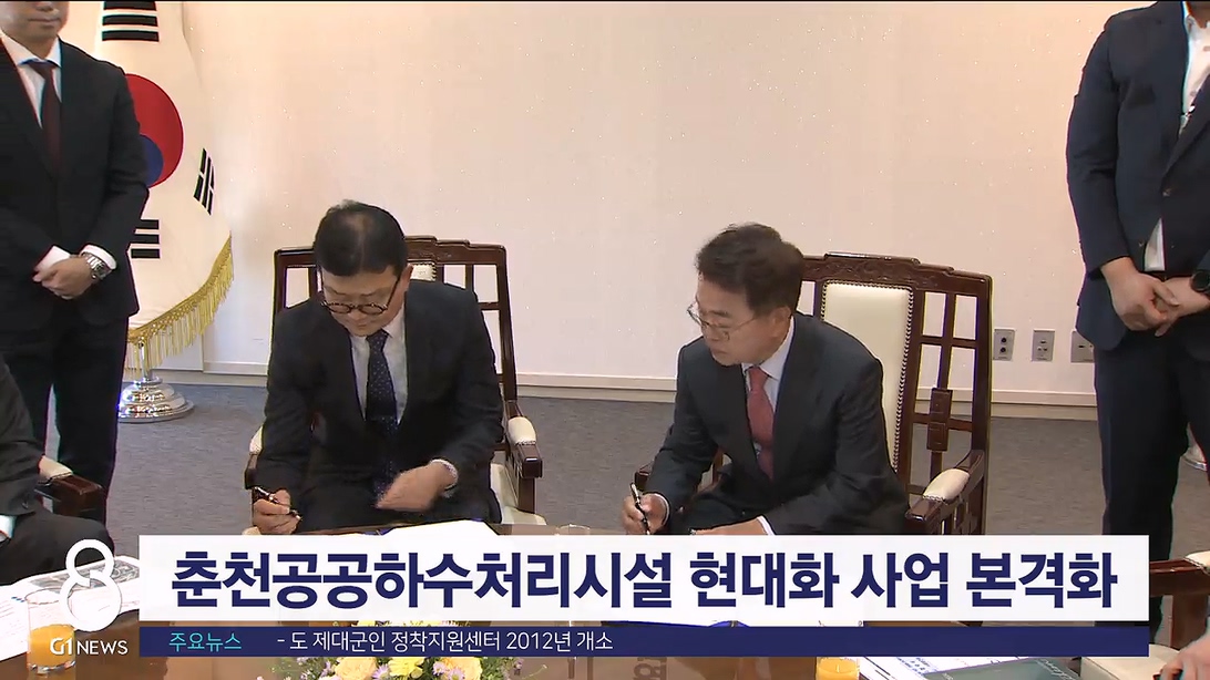 춘천시와 태영건설 등은 오늘(23일) 춘천시청에서 '공공하수처리시설 이전·현대화 민간투자사업 실시 협약'을 체결했습니다.