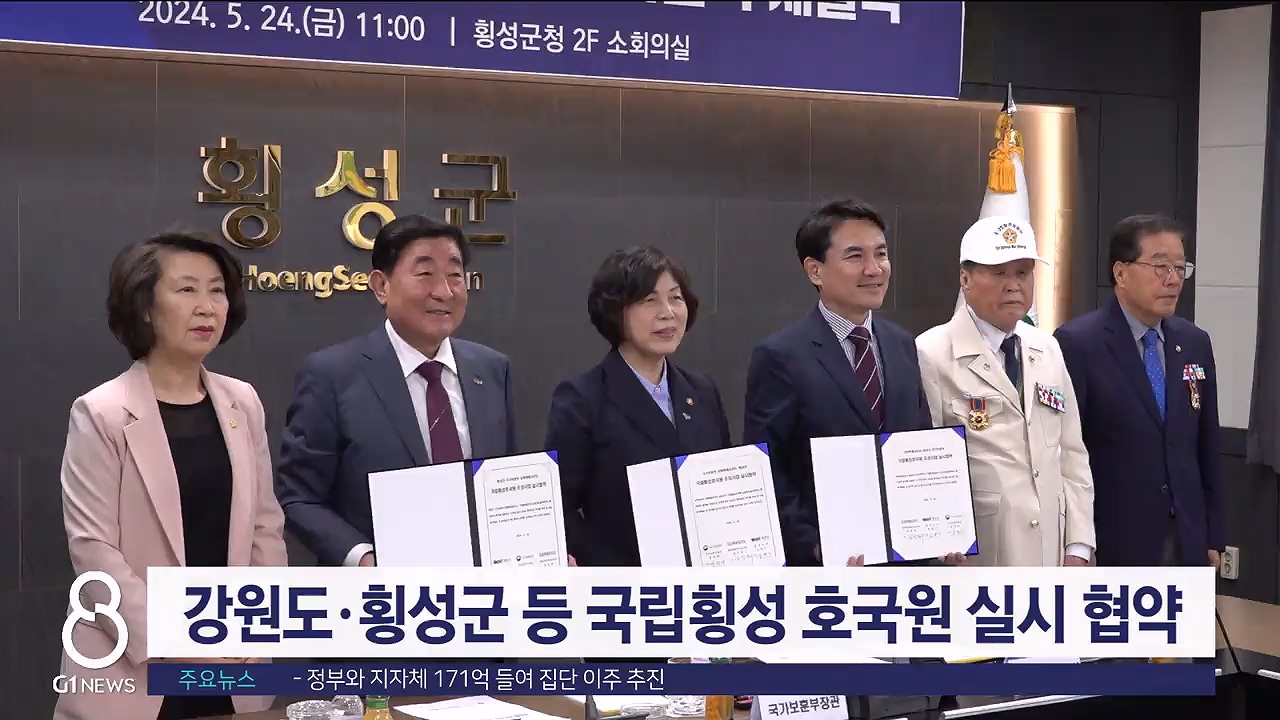강원자치도와 횡성군, 국가보훈부가 오늘(24일) 국립횡성호국원 조성 사업의 원활한 추진을 위한 실시 협약을 체결했습니다.