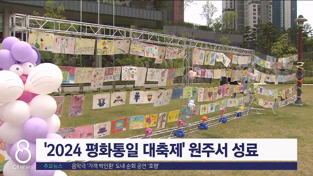 민주평화통일자문회의 원주시협의회가 주관한 이번 축제에서는 평화·통일을 주제로 한 어린이들의 그림전시와 체험 부스 등 평화를 염원하고 통일을 바라는 다채로운 체험 프로그램이 마련됐습니다.