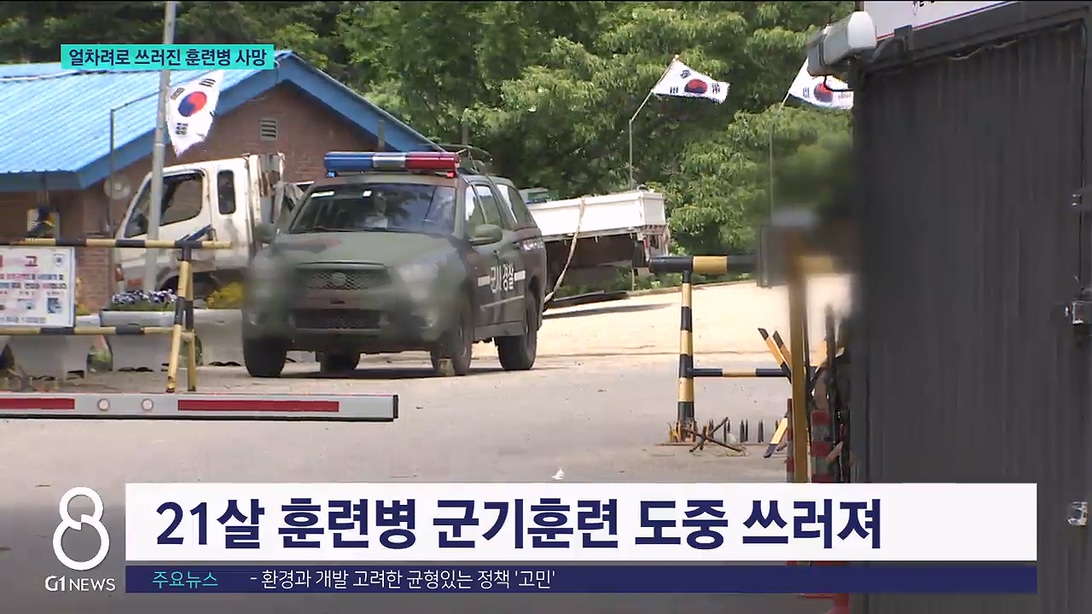 "쓰러진 훈련병은 이곳 부대에서 응급 처치를 받고 병원으로 급히 옮겨졌습니다."