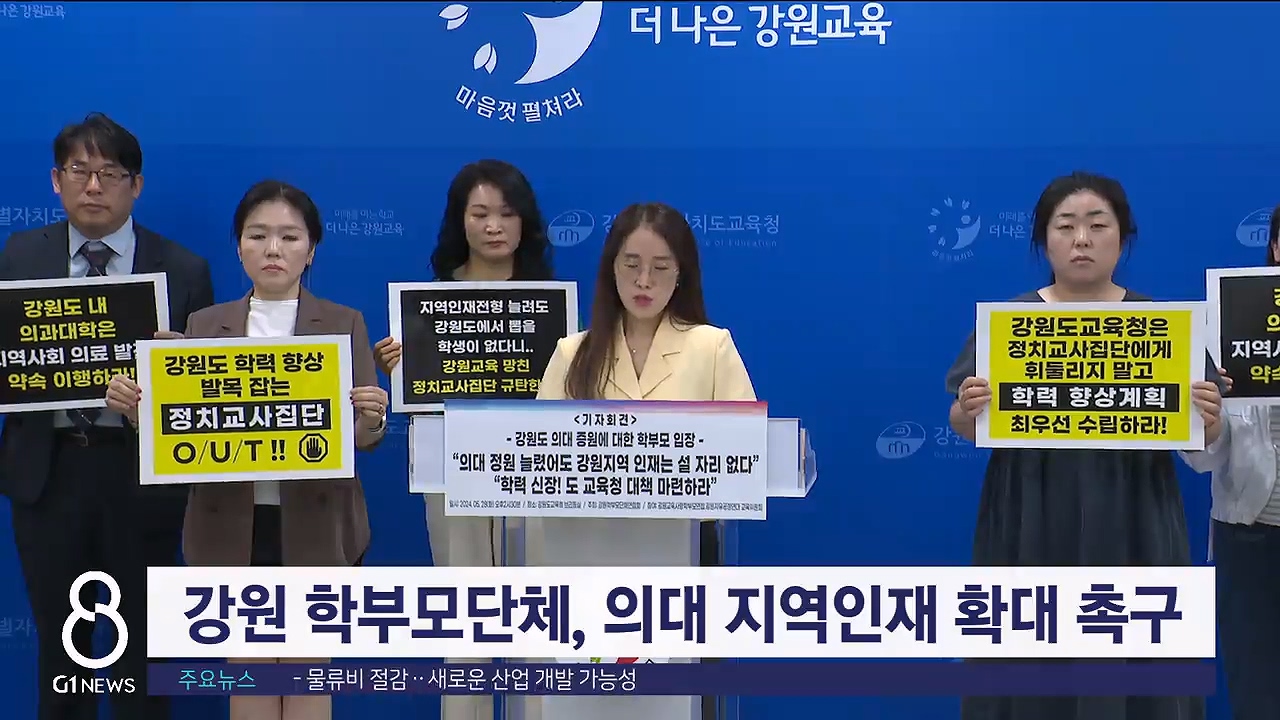 강원학부모단체연합은 오늘(28일) 도 교육청에서 기자회견을 열고, "의대 정원은 늘었지만, 지역 학생들은 설 자리가 없다"며 의대 정원 중 지역인재 비율이 전국 평균보다 밑도는 점을 지적했습니다.