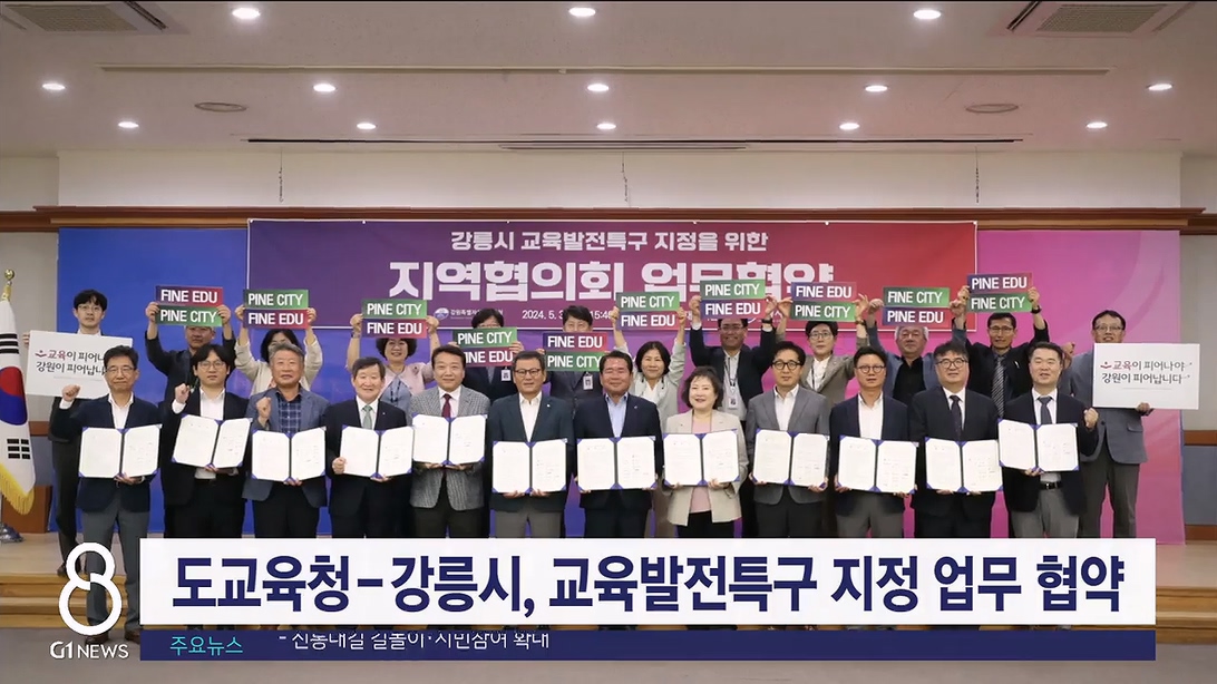 강원자치도 교육청과 강릉시가 교육발전 특구 시범지역 2차 공모를 위한 업무 협약을 체결했습니다.