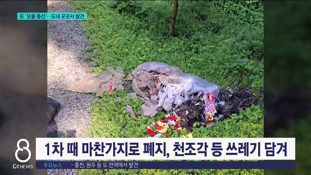 도내 곳곳에서도 오물 풍선이 발견됐습니다.