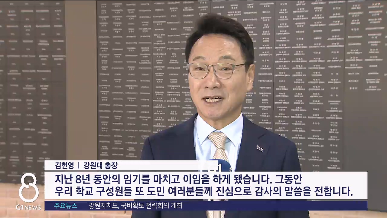 "지난 8년 동안의 임기를 마치고 이임을 하게 됐습니다. 그동안 우리 학교 구성원들 또 도민 여러분들께 진심으로 감사의 말씀을 전합니다. 강원특별자치도의 발전에 우리 강원대가 기여하고 또 서로 역할을 하는 그런 강원대로 계속되기를 바라겠습니다."