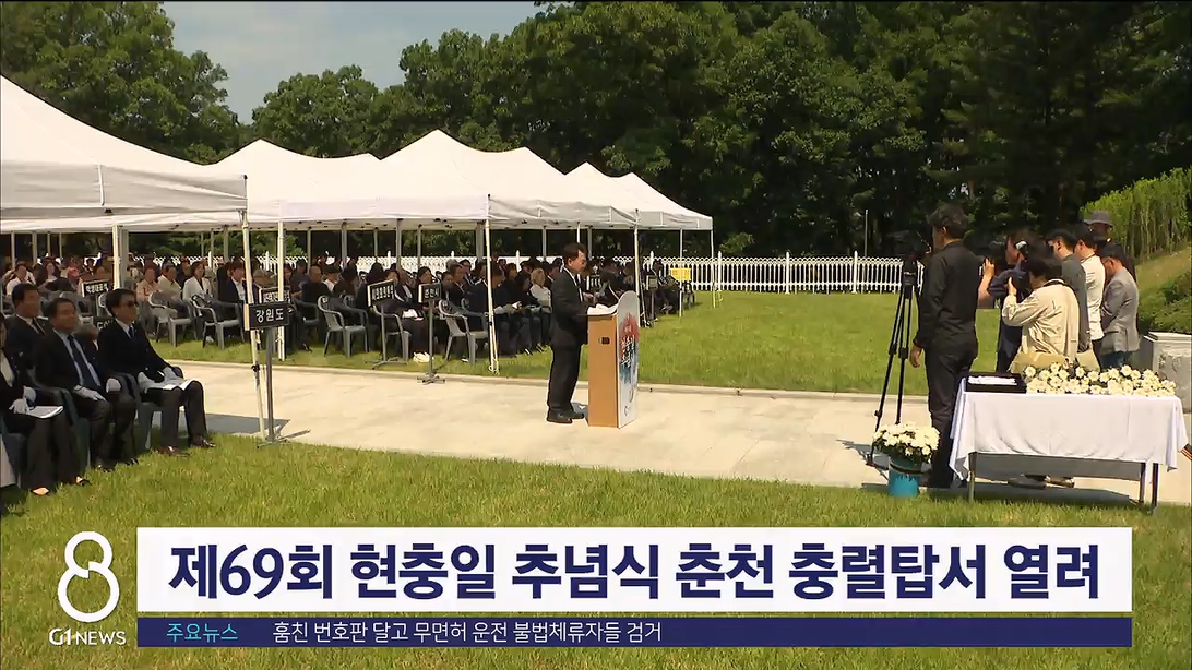 제69회 현충일을 맞아 오늘(6일) 춘천시 우두동 충렬탑 일원에서 추념식이 열렸습니다.
