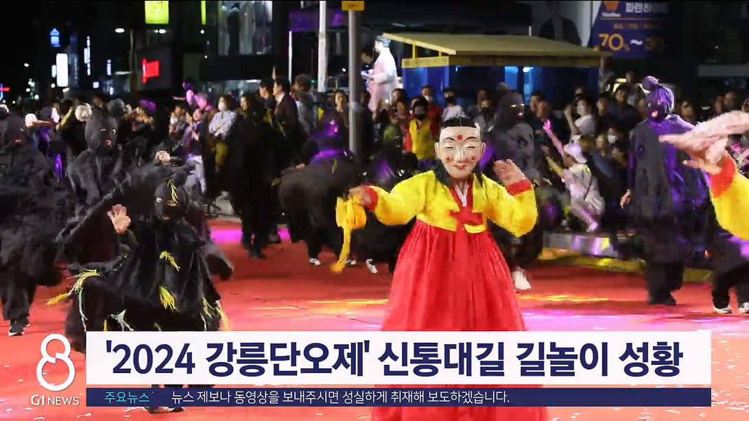 신통대길 길놀이 행사 진행을 위해 현재 강릉 시내 고용노동부 강릉지청에서 대도호부관아 구간과 남산교 일대는 부분 또는 전면 교통통제가 이뤄지고 있습니다.