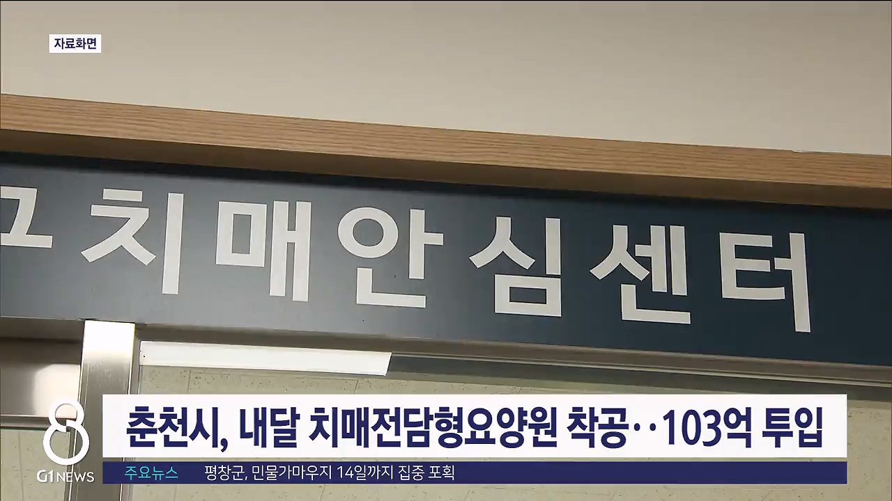 춘천시가 국비 47억 원 등 사업비 103억 원을 들여 치매 노인 140명이 입소할 수 있는 '치매전담형요양원'을 다음 달 착공합니다.