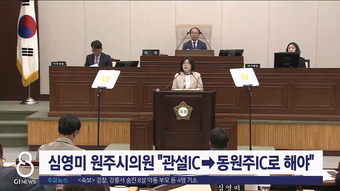 원주시의회 심영미 의원은 오늘(10일) 시의회에서 열린 제249회 정례회 1차 본회의 5분 자유발언을 통해 "원주에는 서원주IC와 남원주IC, 북원주IC가 있다"며,