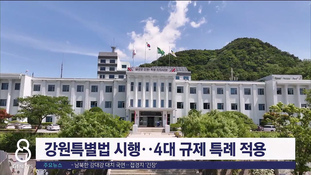 여) 오늘 G1 8시 뉴스는 강원특별자치도청 앞에서 도정 주요 현안들을 점검해 보는 특집 뉴스로 전해드립니다.