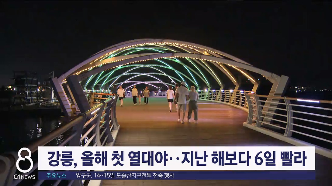 강원지방기상청에 따르면, 오늘 아침 강릉의 최저 기온은 25도로 지난해보다 6일, 강릉을 기준으로는 18일 빨리 관측됐습니다.