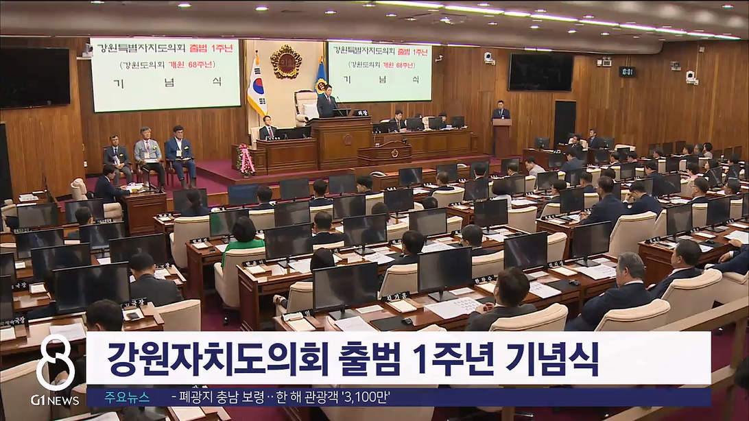 강원자치도의회 출범 1주년, 도의회 개원 68주년 기념식이 오늘(11일) 강원자치도의회 본회의장에서 열렸습니다.