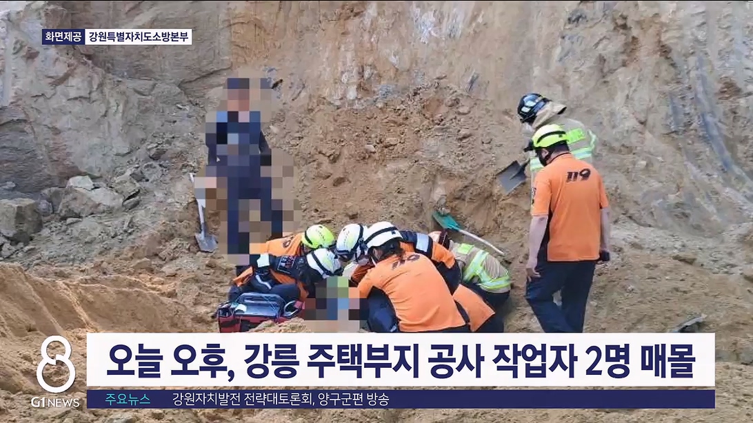 오늘(18일) 오후 3시 23분쯤 강릉시 강남동의 한 주택부지 조성 공사 현장에서 작업자 2명이 1m 깊이 구덩이에 파묻혔습니다.