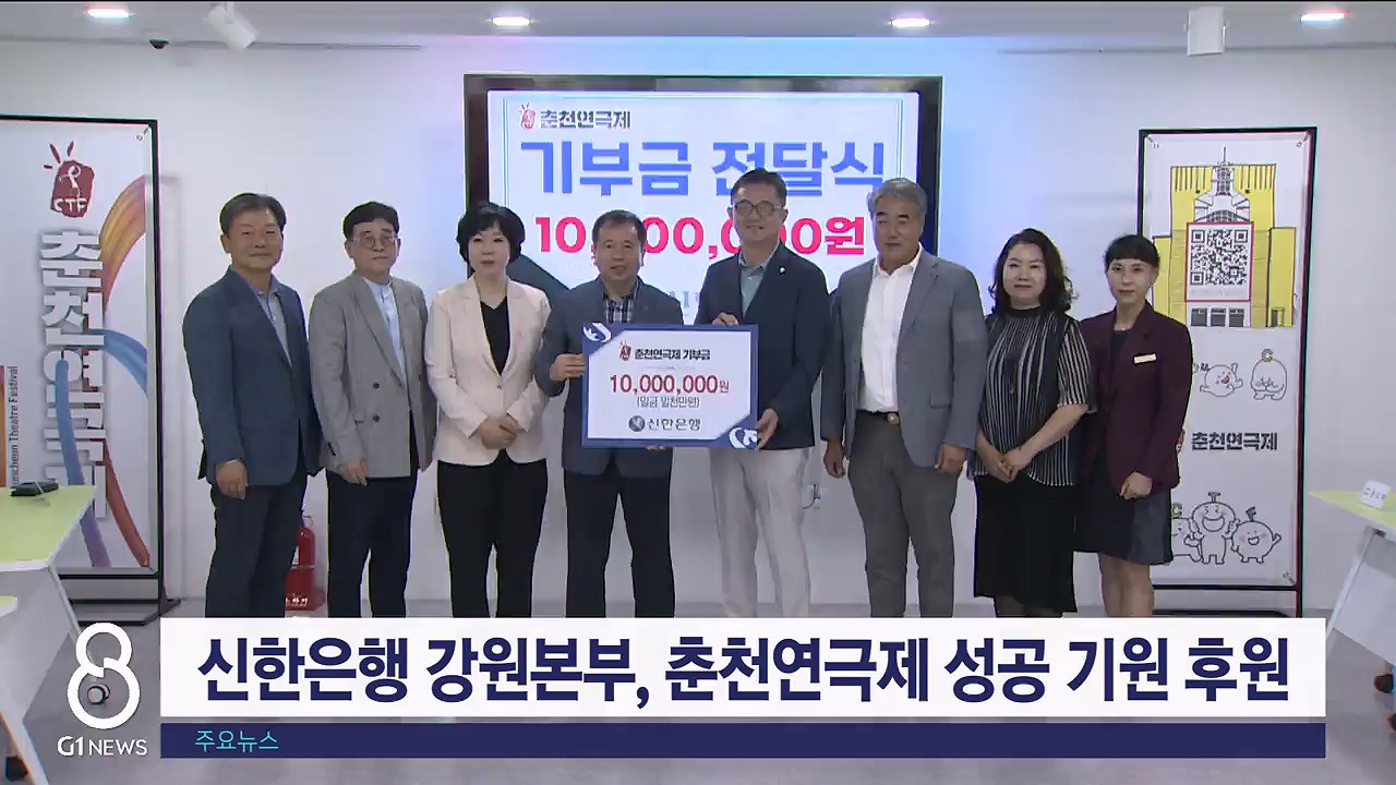 신한은행 강원본부는 오늘(19일) 춘천 봄내극장에서 '2024 춘천연극제' 성공 개최를 위한 후원금 천만 원을 전달했습니다.
