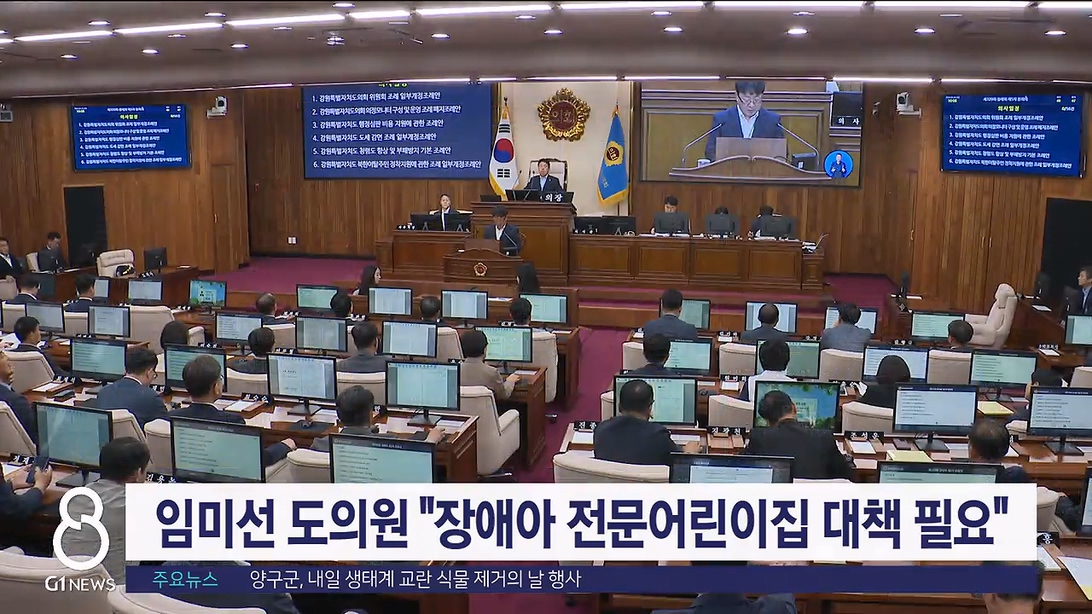 임 의원은 G1뉴스가 보도한 지난 2월 방송을 자료로, "현재 도내 18개 시군에는 12세 이하 장애아동이 총 1,469명이 있고, 장애아 전문어린이집이 있는 지역은 춘천, 원주, 강릉, 삼척 단 4곳에 불과하다"며,