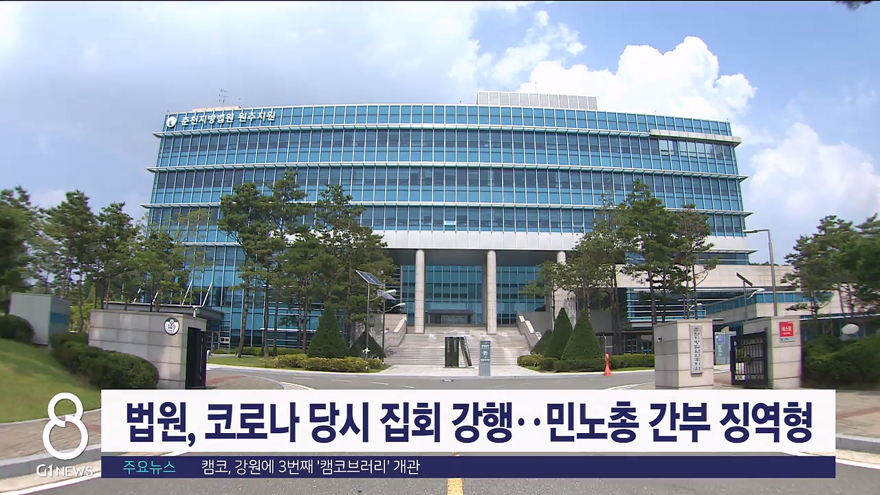 코로나로 집회가 금지됐던 당시 언덕을 넘어 국민건강보험공단 원주 본사로 진입하는 집회를 주도한 민주노총 간부들이 징역형과 벌금형을 받았습니다.