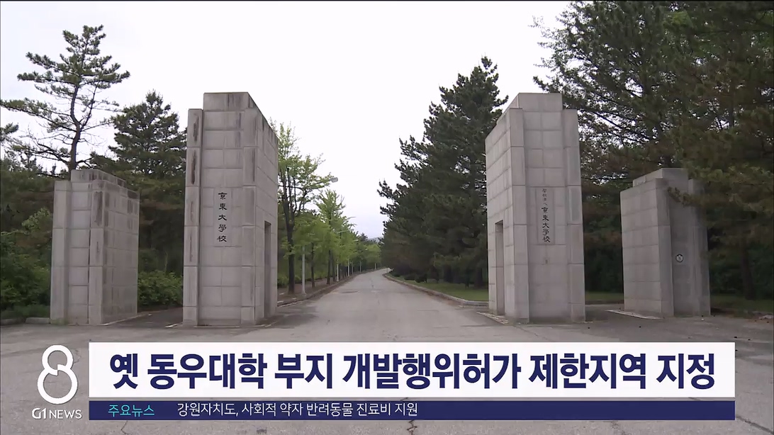 학교법인 경동대가 매각을 추진 중인 법인 소유의 옛 동우대학 부지가 개발행위허가 제한지역으로 지정됐습니다.
