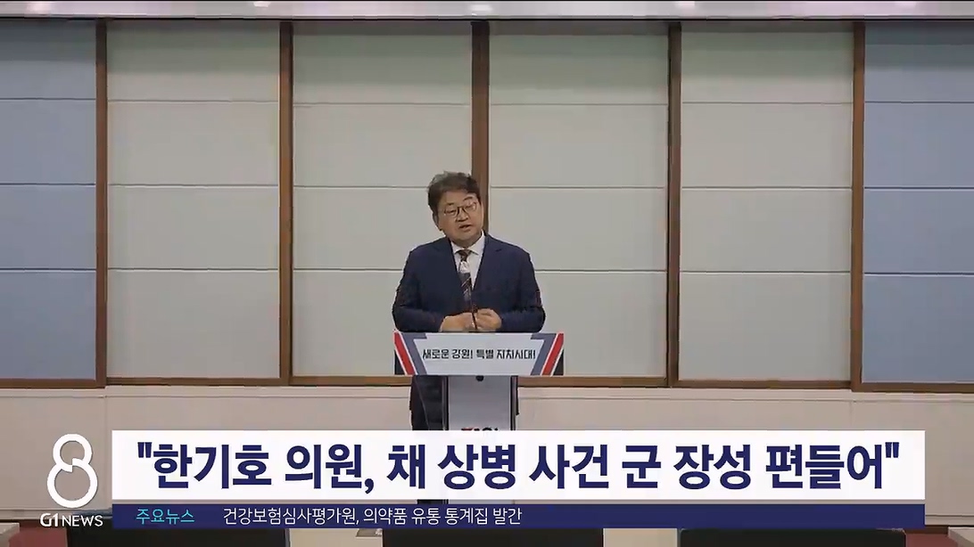 민주당 춘천철원화천양구을 지역위원회가 기자회견을 열고 '채수근 상병 사망사건 청문회'와 관련해, 한기호 의원이 군 장성의 편만 들고 있다고 비판했습니다.