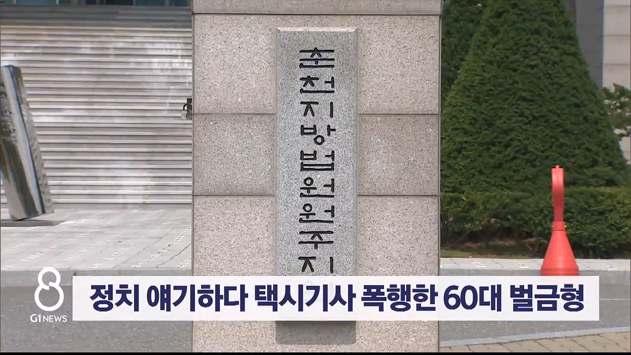 정치 관련 대화를 하다 자신과 의견이 다르다는 이유로 운행 중인 택시기사를 폭행한 60대가 벌금형을 선고 받았습니다.
