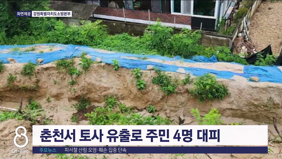 또 춘천시 동면의 한 공사 현장에서도 토사가 유출됐고, 춘천 신북읍의 토마토 재배 비닐하우스가 무너졌습니다.